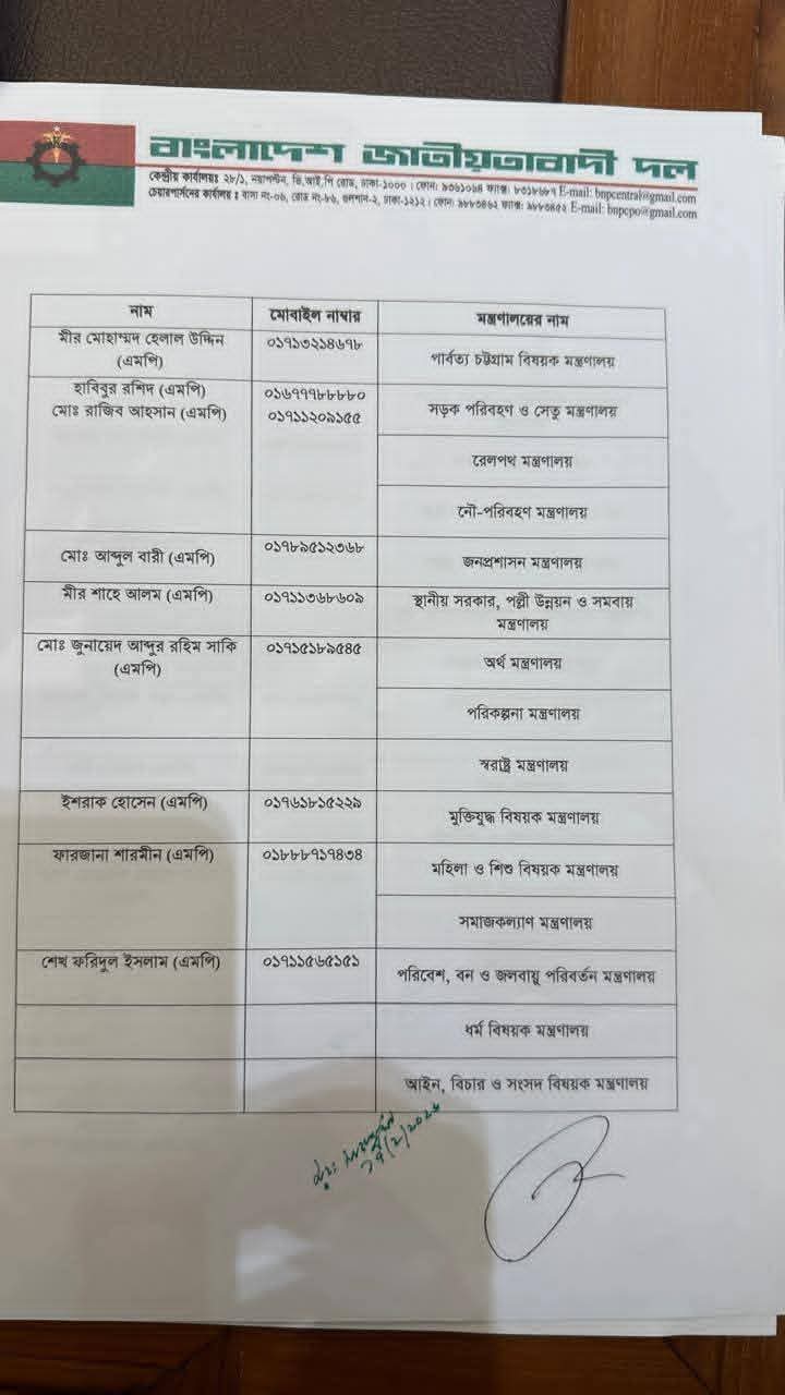 কে কোন মন্ত্রণালয়ের দায়িত্ব পেলেন, দেখুন পূর্ণাঙ্গ তালিকা