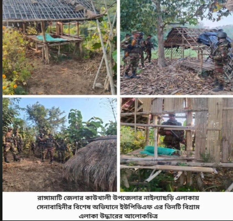 পার্বত্য চট্টগ্রামের রাঙ্গামাটি জেলার কাউখালির গহীন জঙ্গলে ইউপিডিএফ (মূল) এর গোপন আস্তানা উচ্ছেদ করেছে বাংলাদেশ সেনাবাহিনীর চৌকস সদস্যরা।