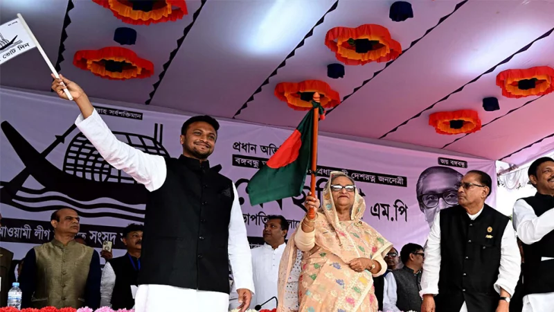 ২০২৪ সালের সংসদ নির্বাচনের এরকিছুদিন পরেই দেশে শুরু হয় কোটা সংস্কার বা বৈষম্য বিরোধী ছাত্র জনতার আন্দোলন। সেই আন্দোলন রুপ নেয় সরকার পতনের আন্দোলনে।৫ই আগস্ট শেখ হাসিনা দেশ ছেড়ে পালানোর মধ্যে দিয়ে আওয়ামীলীগ সরকারের ভয়ংকর সাম্রাজ্যের পতন ঘটে। ৫ই আগস্টের পূর্বেই দেশ ছেড়ে পালায় সাকিব আল হাসান। জন্ম স্থান ও সংসদীয় আসন মাগুরায় ৫ই আগস্টের পূর্বে সাকিব আল হাসানের নেতাকর্মীরা নিরস্ত্র ছাত্র জনতার উপর ভয়াবহ হামলা চালায়।আদাবর থানায় হত্যা মামলা, চেক জালিয়াতি মামলা, দুদকের মামলা আছে সাকিব আল হাসানের বিরুদ্ধে। সরকার পতনের পরে দেশে ফেরা কিংবা দেশের হয়ে খেলার বিষয়ে একাধিকবার আলোচনা হলেও মাঠ ফেরা হয়নি এই ক্রিকেটারের।